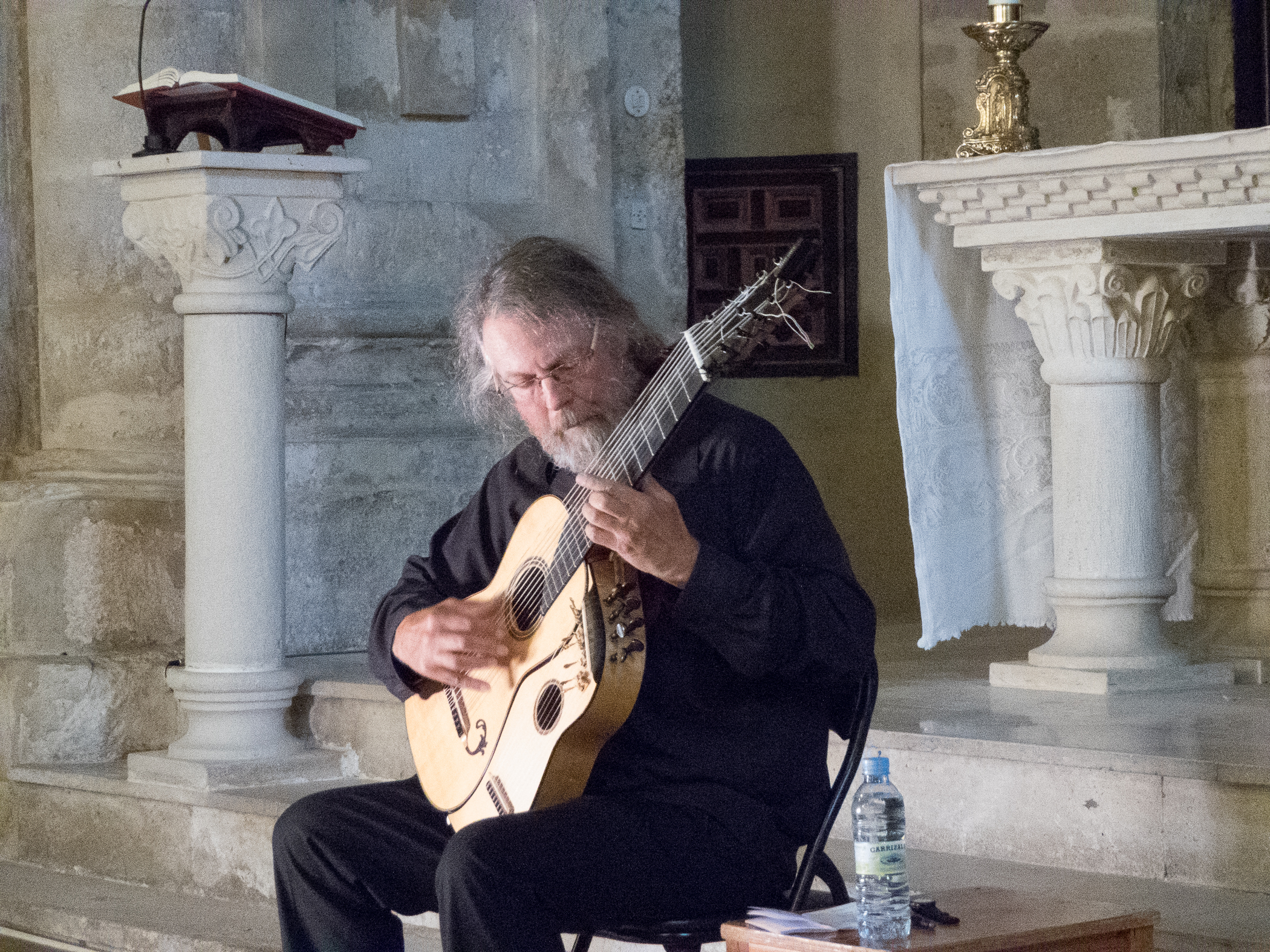 The nuns inform us of a free concert tonight in a nearby church which sounds quite interesting. After running into our Irish friend Sinead in the courtyard, the three of us decide to pursue this opportunity together. The featured musician, James Kline, designed a fascinating instrument that has 2 necks, 11 strings on one and a lute and dulcimer on the other. Enjoyable, relaxing music.