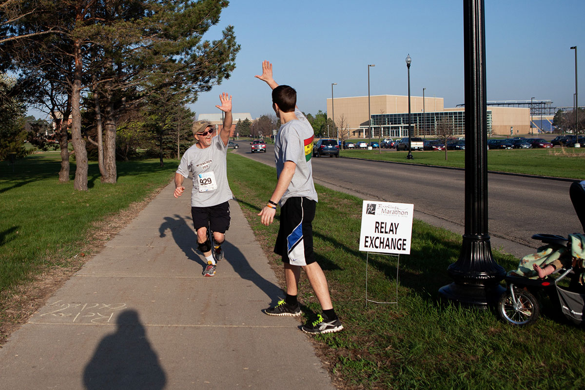 This hand slap appears to be choreographed as Julia begins her three mile section.