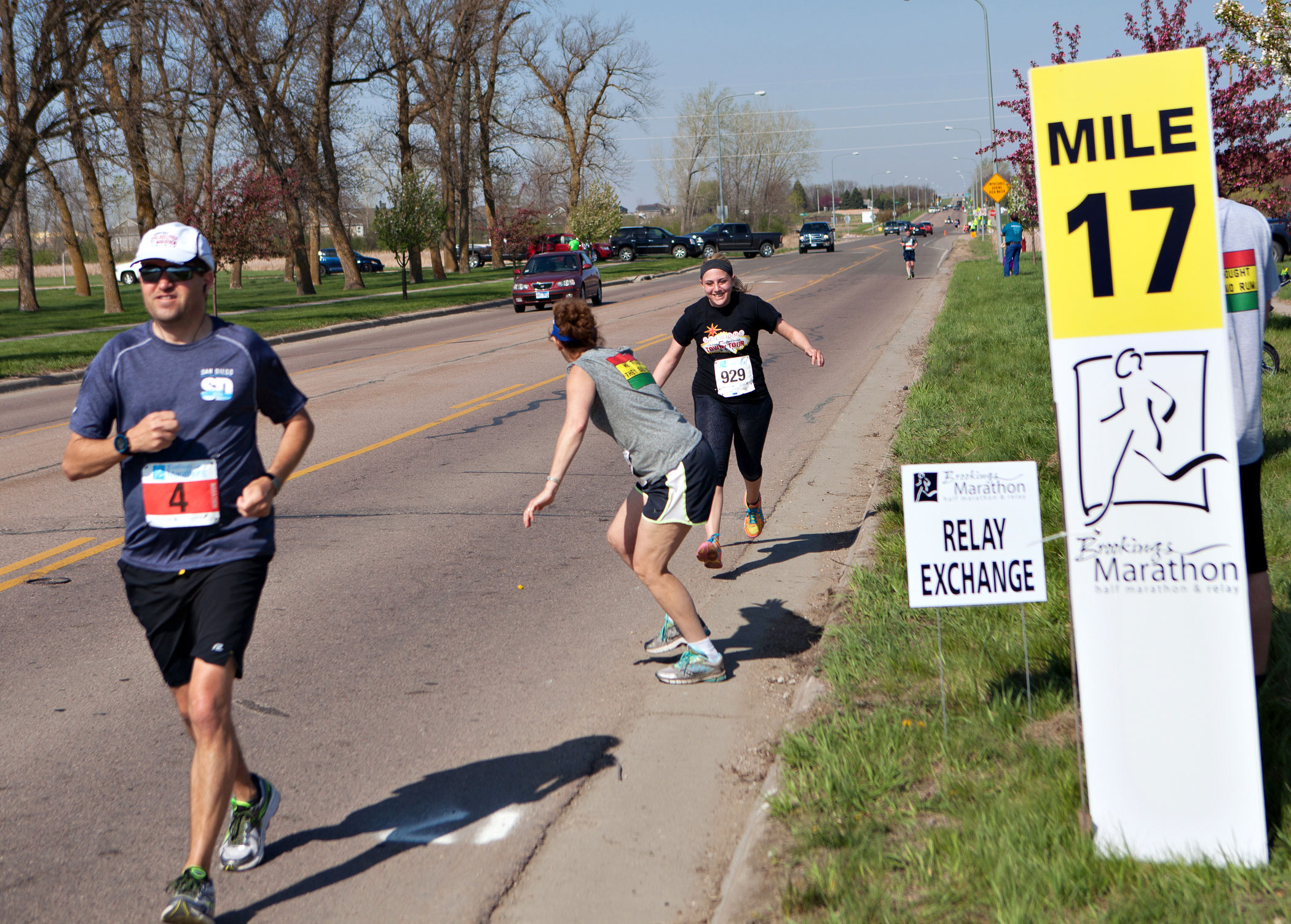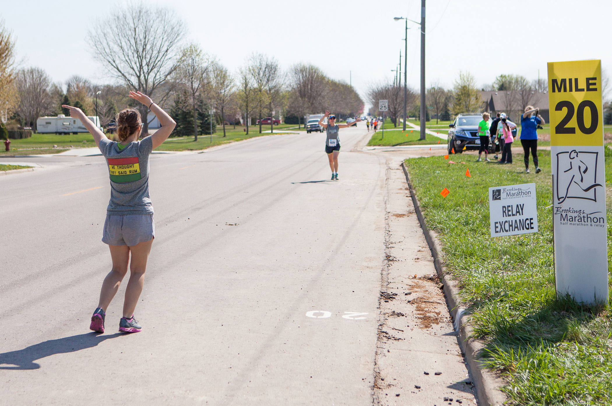 Ready and waiting for Randy to complete the first four miles as runners sprint by…