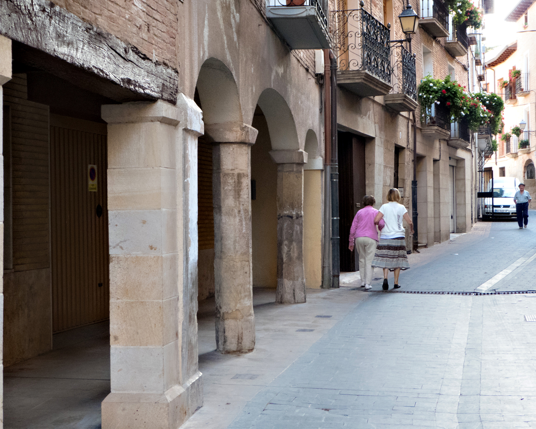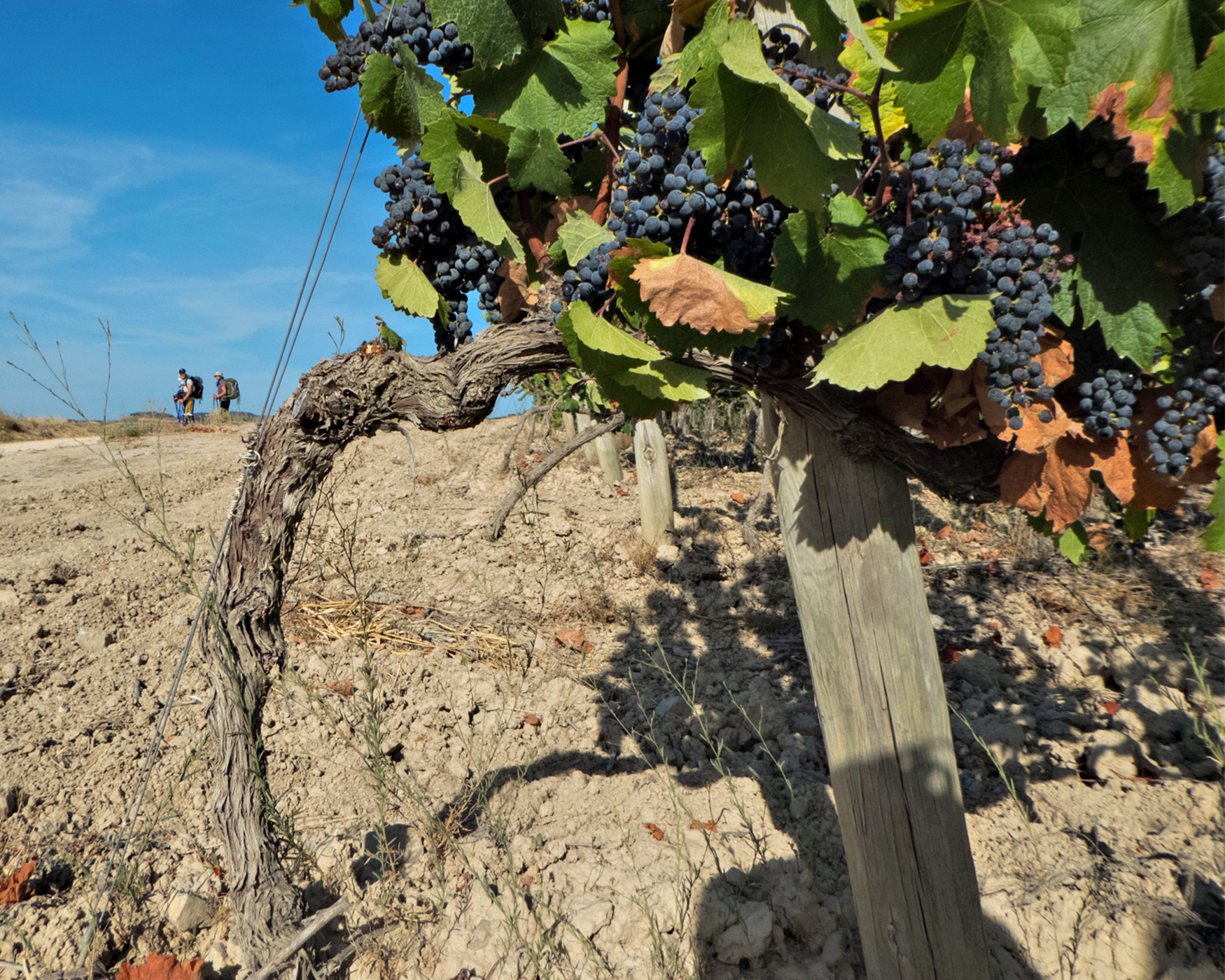 We take our time getting started since I (Joyce) added kilometers in my head incorrectly and we have a short day of only about 8 kilometers. It’s tricky finding beds these days even though it’s beyond the summer rush. It’s still unseasonably hot and challenging to beat the speedier Pilgrims for the Municipal beds in Viana while Logrono would be a long haul in this heat. We need an easy day anyway, right? Divine intervention, for sure.